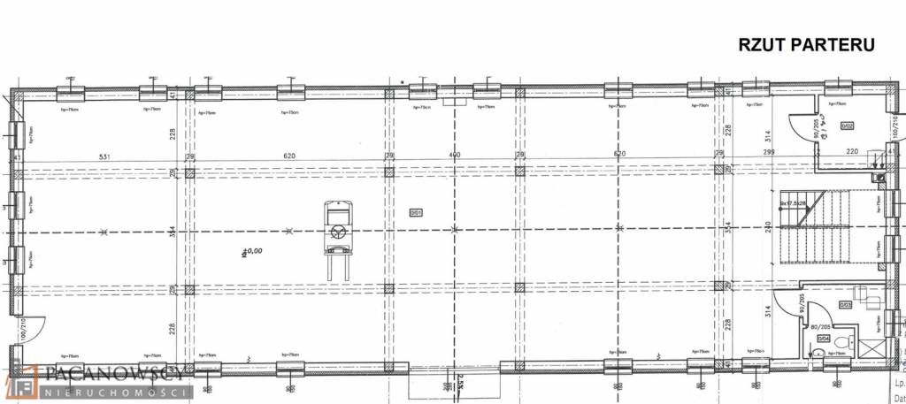 Parter: magazyn (22,9m2), kotłownia (5,4m2), pom. socjalne (4,6m2), WC (1,7m2) - razem 234,6m2