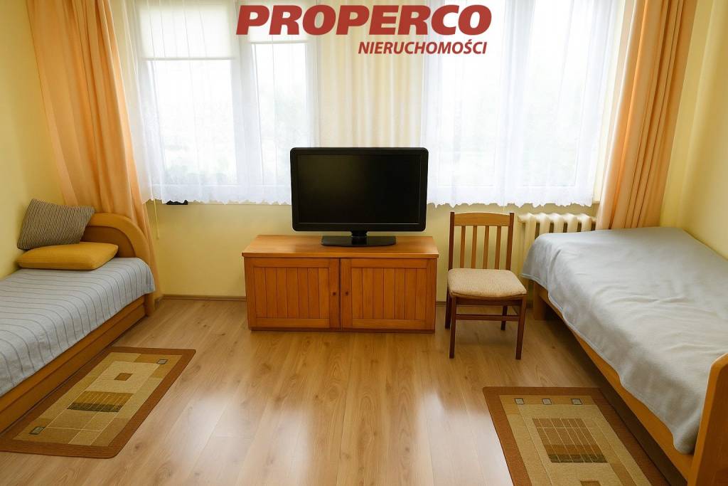Mieszkanie usytuowane dwustronnie: salon, sypialnia i kuchnia z wystawą południową, skąd rozpościera się unikatowy widok na Góry Świętokrzyskie i Święty Krzyż; druga sypialnia z wystawą północną. Nieruchomość położona na spokojnym osiedlu w sąsiedztwie terenów zielonych, stanowi idealną propozycję dla osób ceniących sobie kontakt z naturą.