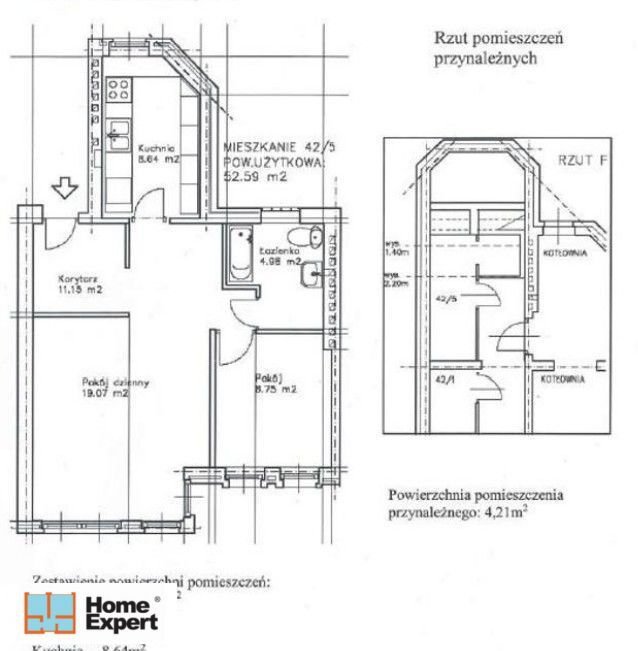 Do mieszkania przynależy również komórka lokatorska o powierzchni 4,21m²