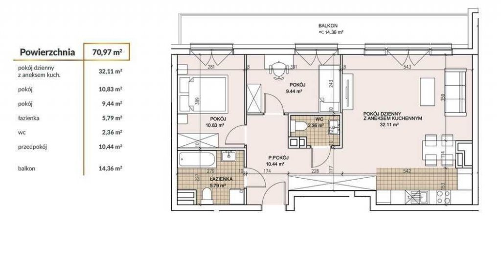-Taras/balkon o powierzchni ponad 14m2, wyjście na taras z salonu oraz sypialni i drugiego pokoju.