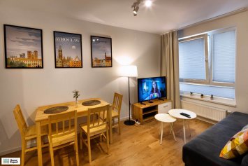 Mieszkanie jest jasne, nowoczesne i w pełni umeblowane.