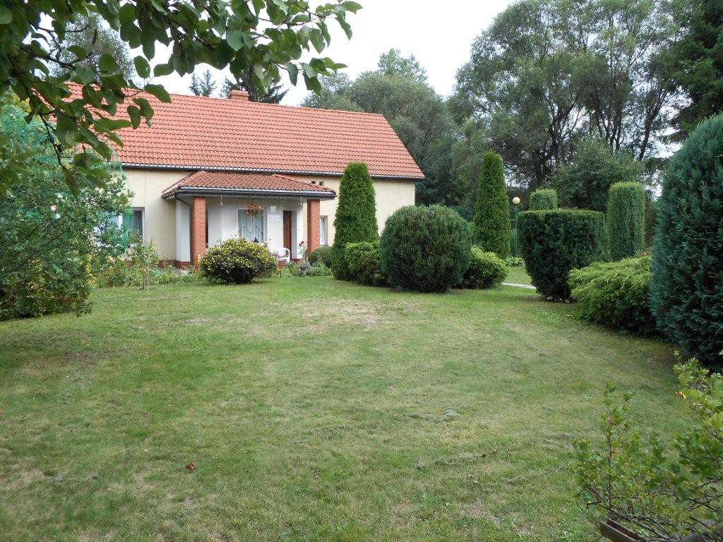 Dach dwuspadowy kryty dachówką. Na posesji wolnostojący garaż i budynek gospodarczy. Wszystkie media- woda sieć miejska, gaz, siła, kanalizacja, TV kablowa, internet. Wokół piękny duży ogród, dom posiada dwa niezależne wejścia. Piękne okolice, trasy rowerowe. Dom idealny dla dużej rodziny oraz prowadzenia działalności.
