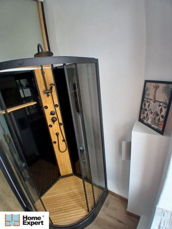 - Łazienka połączona z kuchnią: kabina prysznicowa z hydromasażem, pralka, lodówka, kawiarka, kuchenka gazowa