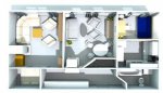 Składa się z trzech przestronnych pokoi oraz dużej wnęki, którą można wykorzystać jako dodatkową sypialnię lub gabinet.