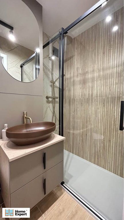 Mieszkanie jest umeblowane i urządzone w nowoczesnym stylu z wykorzystaniem materiałów wyższej jakości.