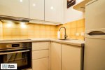 - Oddzielna kuchnia (ok. 4 m²) – lodówka, kuchenka z piekarnikiem