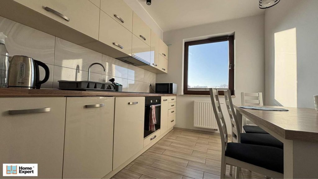 Mieszkanie wyposażone, m.in. piekarnik, zmywarka, okap, płyta indukcyjna, lodówko-zamrażalka, pralka.