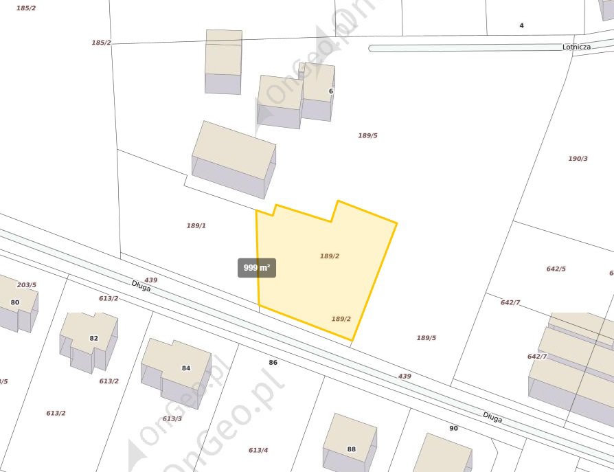 Na sprzedaż działka budowlana nr 189/2 o powierzchni 1000 m², przeznaczona pod zabudowę jednorodzinną.