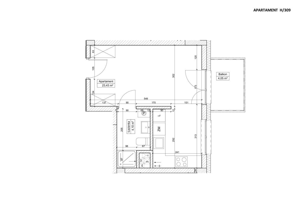 Układ lokalu obejmuje jasny salon z wyjściem na duży balkon,