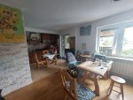 - salon z aneksem kuchennym o łącznej powierzchni ok. 28 m2: ściany gładź, podłoga panele oraz terakota, taras ok. 15 m2.