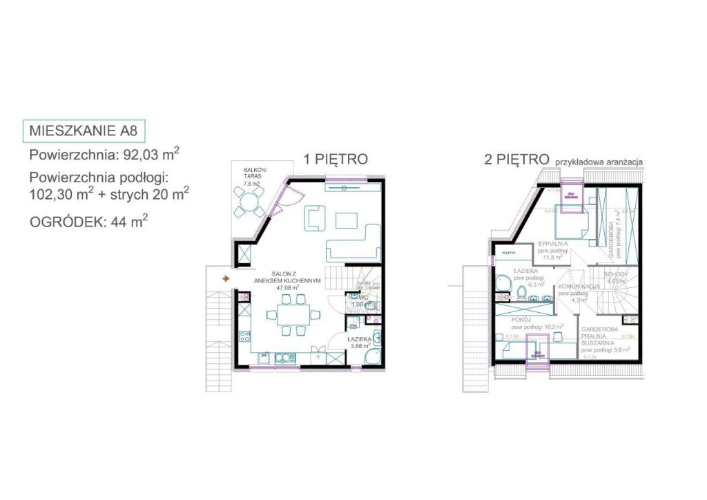 Powierzchnia użytkowa: 92,03 m², Powierzchnia po podłodze: 102,30 m2 + strych 20m2
