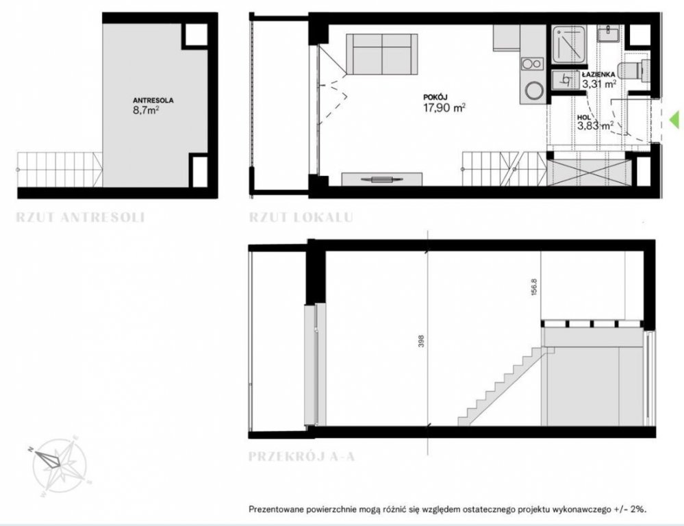 Okazja! 33m2 blisko lotniska - idealne na wynajemNa sprzedaż lokal inwestycyjny z antresolą 33 m² (25 m² + 8 m²), blisko lotniska! Sprzedam atrakcyjny lokal inwestycyjny na 2. piętrze nowoczesnej inwestycji w dynamicznie rozwijającej się okolicy przy lotnisku. Powierzchnia całkowita: 33 m² (w tym antresola 8 m²), wysokość pomieszczeń: 4 m idealna do stworzenia przestronnego, loftowego wnętrza. - Antresola z możliwością aranżacji sypialni lub biura- Niski metraż = niskie koszty eksploatacji- Wysoki potencjał inwestycyjny wysoka stopa zwrotu z najmu- Możliwość odliczenia 23% VAT (sprzedaż na fakturę)Cena: 380 000 PLN brutto - możliwość odliczenia VAT! korzystniejsza niż w ofercie dewelopera możliwość przejęcia atrakcyjnego harmonogramu płatności: - 129 000 PLN brutto odstępnego przy podpisaniu umowy cesji- 251 000 PLN brutto do zapłaty deweloperowi przed odbiorem lokalu (planowany termin: marzec 2026)Forma prawna: cesja umowy deweloperskiej. Zdjęcia przedstawiają możliwa aranżację. Cena dotyczy mieszkania w stanie deweloperskim