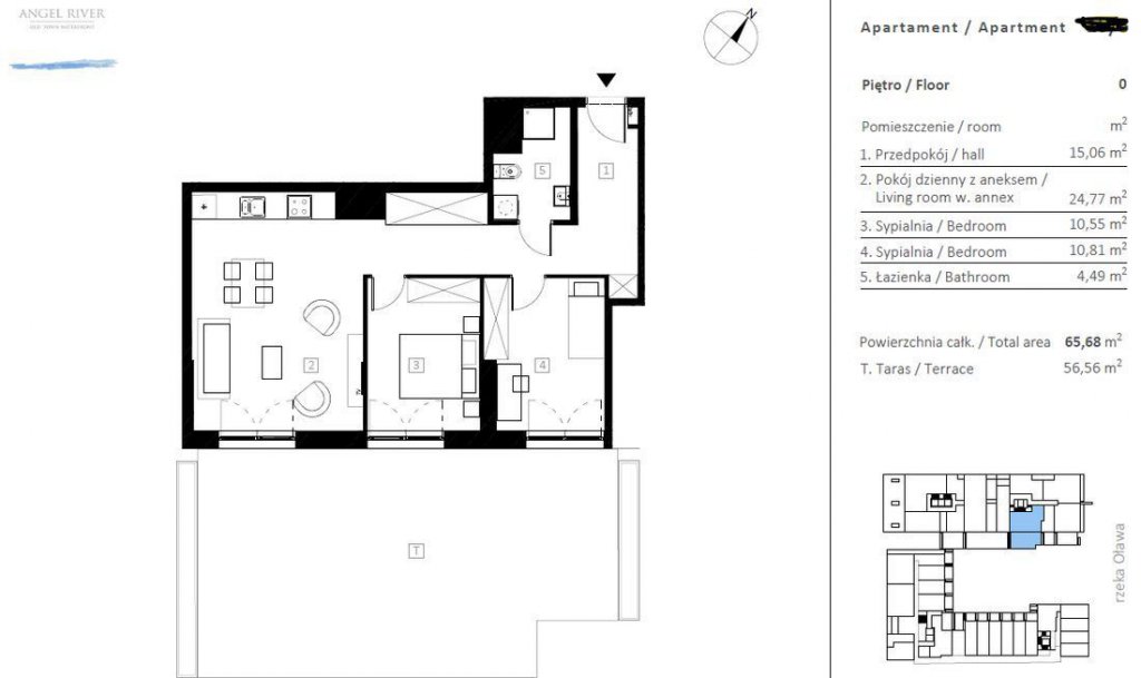 Mieszkanie, 65 m², WrocławLokalizacja: ul. Walońska, Przedmieście Oławskie, Wrocław Powierzchnia 65.67 patio: ponad 55 m² Piętro: parter Cena mieszkania: do negocjacji Cena miejsca postojowego: 65 000 PLN (obowiązkowe) Opis mieszkania Oferuję na sprzedaż nowoczesne 3-pokojowe mieszkanie w prestiżowej inwestycji Angel River, zlokalizowanej nad rzeką Oławą, w samym sercu Wrocławia. Mieszkanie wyróżnia się przestronnym, prywatnym patio o powierzchni ponad 55 m², które stanowi idealne miejsce do relaksu, spotkań towarzyskich czy uprawy roślin. Układ mieszkania: - przestronny salon z aneksem kuchennym- dwie niezależne sypialnie- nowoczesna łazienka- przedpokój Dodatkowe atuty: - wysokie sufity- klimatyzacja- pełne umeblowanie i wyposażenie- doskonała opcja inwestycyjnaPrzestronne patio Twój prywatny ogród w sercu miasta Unikalnym atutem mieszkania jest przestronne patio o powierzchni ponad 55 m², które stanowi rzadkość w miejskich inwestycjach. To idealne miejsce do: - organizowania spotkań z rodziną i przyjaciółmi- uprawy roślin i stworzenia własnego ogrodu- trzymania zwierząt domowych- urządzenia strefy relaksu lub miejsca do ćwiczeń- przechowywania sprzętu sportowego lub rowerów Angel River luksusowa inwestycja w sercu Wrocławia Angel River to nowoczesny kompleks mieszkaniowy zlokalizowany przy ul. Walońskiej, w prestiżowej dzielnicy Przedmieście Oławskie. Inwestycja wyróżnia się ponadczasową architekturą i wysokim standardem wykończenia. W budynku znajdują się: - recepcja z całodobową ochroną- strefa SPA z sauną, jacuzzi i siłownią- plac zabaw dla dzieci- sklep spożywczy i kawiarnia/piekarnia na parterze- stacja ładowania pojazdów elektrycznych- rowerownia i stacja rowerów miejskich- podziemny parking z miejscem postojowym dla każdego mieszkania Lokalizacja inwestycji zapewnia szybki dostęp do centrum miasta oraz terenów rekreacyjnych wzdłuż rzeki Oławy. W pobliżu znajdują się Politechnika Wrocławska, Plac Grunwaldzki oraz Dworzec Główny.