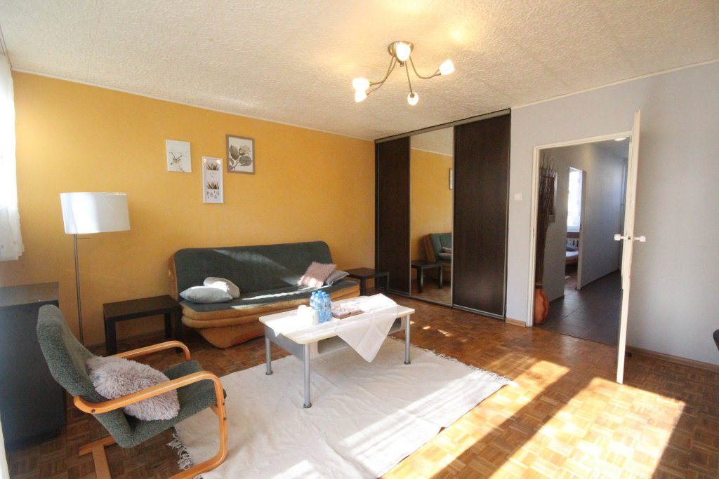Ciche mieszkanie 2-pokojowe dwustronne w pełni rozkładowe na pierwszym piętrze w zadbanym, niskim bloku z ogrzewaniem miejskim na bliższych Krzykach.