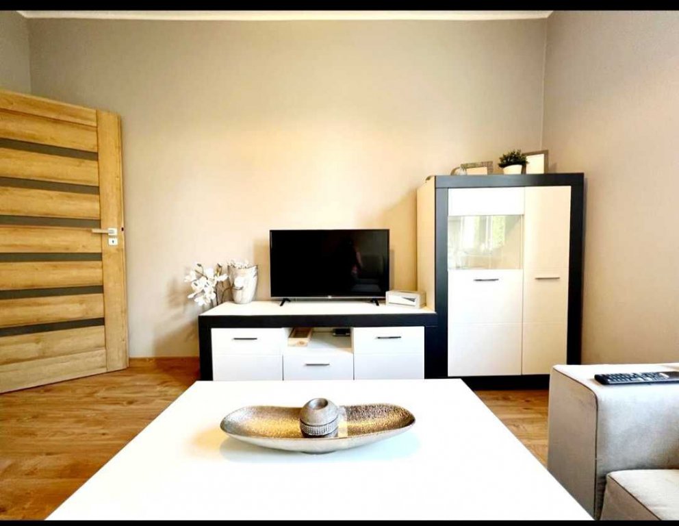 W pełni umeblowane: Telewizor, pralka, lodówka, kuchnia indukcyjna, piekarnik, czajnik elektryczny, naczynia.