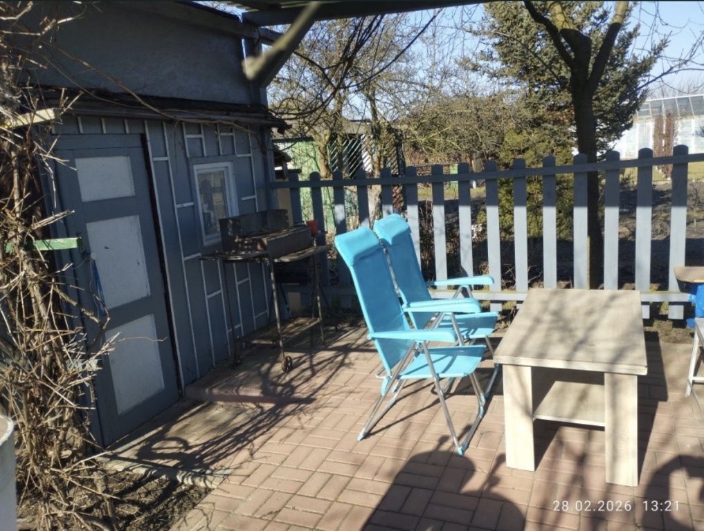 Działka posiada prąd, studnie, wc oraz zadaszony taras