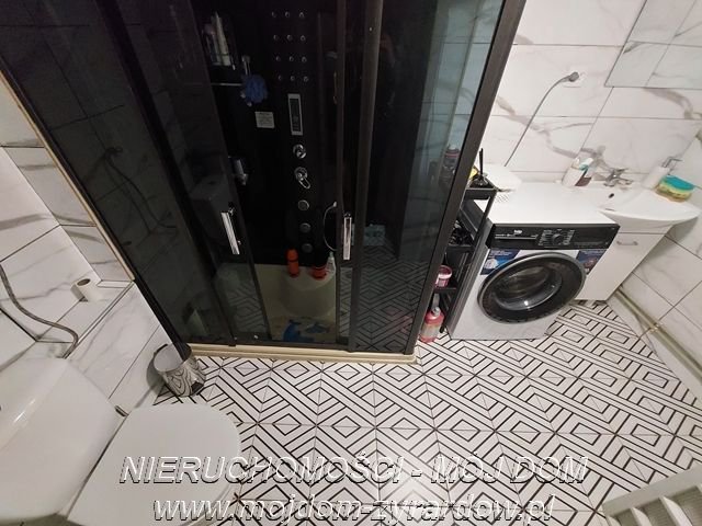 - łazienka z wc: ściany - gres, podłoga - gres, kabina prysznicowa.